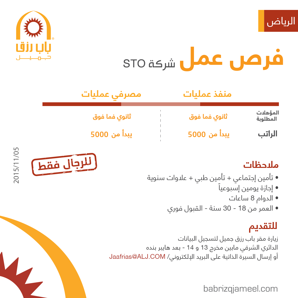 باب رزق جميل للتوظيف. المسمى الوظيفي مقر الاقامة الجهة تاريخ الأعلان. كشف باب رزق جميل للتوظيف في بيان رسمي عن طرح عدد من الوظائف الشاغرة لكافة المواطنين السعوديين وذلك تحت مسمي موظفين خدمة عملاء عبر الهاتف للرجال والنساء في العاصمة السعودية ارياض. أعلن باب رزق جمیل عن توفر وظائف شاغرة للرجال للعمل في مختلف مدن المملكة بمسمى مندوب توصيل وفق الشروط. قامت شركة باب رزق جميل للتوظيف بتوفير 51 499 فرصة عمل في محتلف مجالات الأعمال في السعودية في عام 2017 وهو ازدياد بمعدل 18 عن نتائج العام السابق.