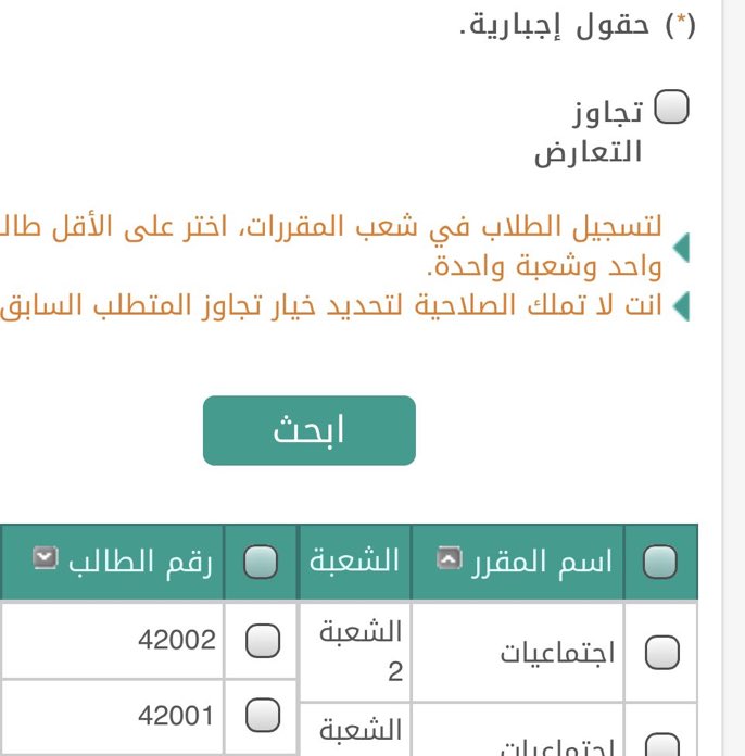 تسجيل الطلاب في شعب المقررات