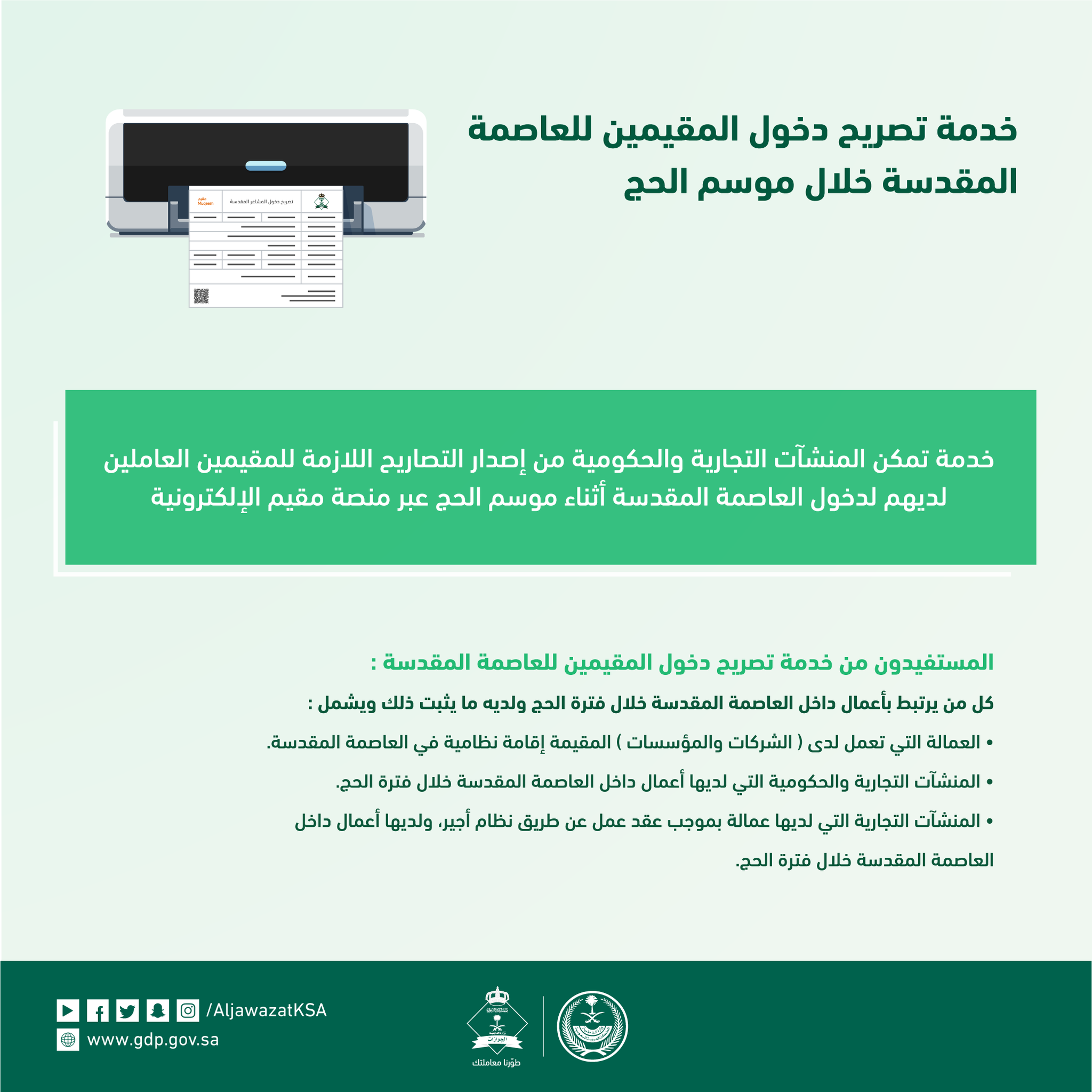 تصريح دخول المشاعر المقدسة. كيف تستخرج تصريح دخول مكة المكرمة من بوابة علم أيام قلائل تفصلنا عن موسم الحج وهنا يجب على الشركات والمؤسسات والمقيمين من خارج مكة المكرمة الراغبين في دخول مكة خلال هذه الأيام معرفه كيفية استخراج تصريح. تغريم 16 شخصا لدخولهم المشاعر المقدسة دون تصريح. إيقاع العقوبة خلال الأيام السبعة الماضية على 16 شخصا بواقع 10000 ريال لكل منهم لمخالفتهم دخول المشاعر المقدسة دون تصريح. المتحدث الرسمي لـ الأمن العام.