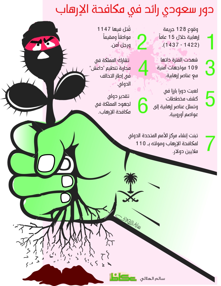 2011 بين المملكة و الامم المتحدة لتأسيس مركز الأمم المتحدة لمكافحة الارهاب و في عام 2014 تبرعت فيه المملكة بمبلغ 100 مليون دولار و نجح هذا المركز في اعداد. جهود السعودية في مكافحة الإرهاب الثلاثاء 21 ذو الحجة 1441 هـ 11 أغسطس 2020 الرئيسية. خاف والرهبة في أصل اللغة تعني الخوف والفزع. تعد المملكة العربية السعودية من أكثر دول العالم تعرضا واستهدافا للعمليات الإرهابية خلال العقود الماضية وهي تقوم بدور مؤثر وفعال في مجال حفظ الأمن ومكافحة الإرهاب والتصدي له على مختلف الاصعدة وبجميع.